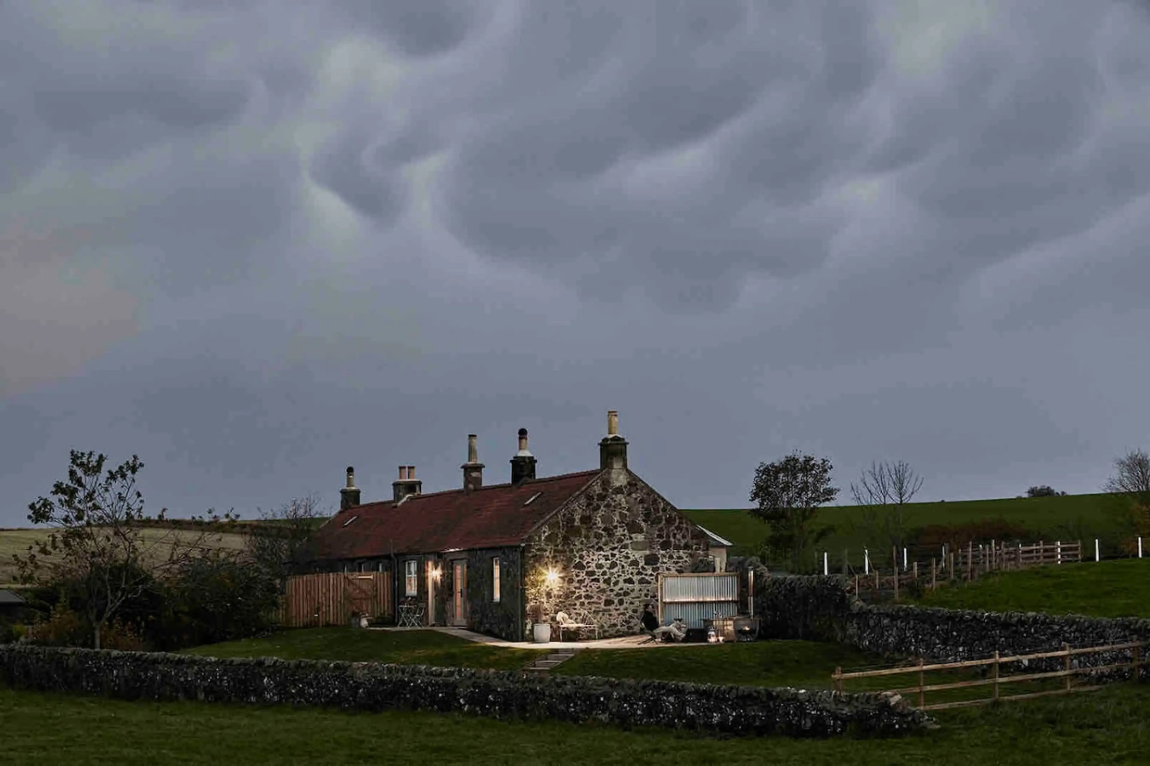 This unique cottage has a style all of its own with beautiful views over the fields to the sea. Sit and relax in peace and luxury or in the outdoor woodfire hikki bath. All newly renovated and fully equipped to be your home away from home. Centrally located just 40 from Edinburgh, St Andrews, Glenea...